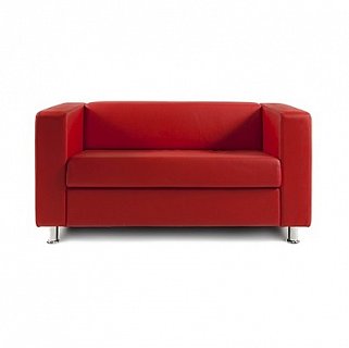 Офисный двухместный диван Алекто с опорами. Бюджетный вариант для офиса или дома. Отличительная особенность - спинка и подлокотники находятся на одном уровне.  Благодаря простому дизайну, такой диван легко приспособится к интерьеру любого помещения. 2-х местный диван Алекто может быть изготовлен в различных обивках (экокожа, экопремиум или кожа натуральная).