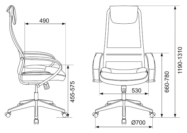 • Подлокотники металлические с накладками из экокожи.