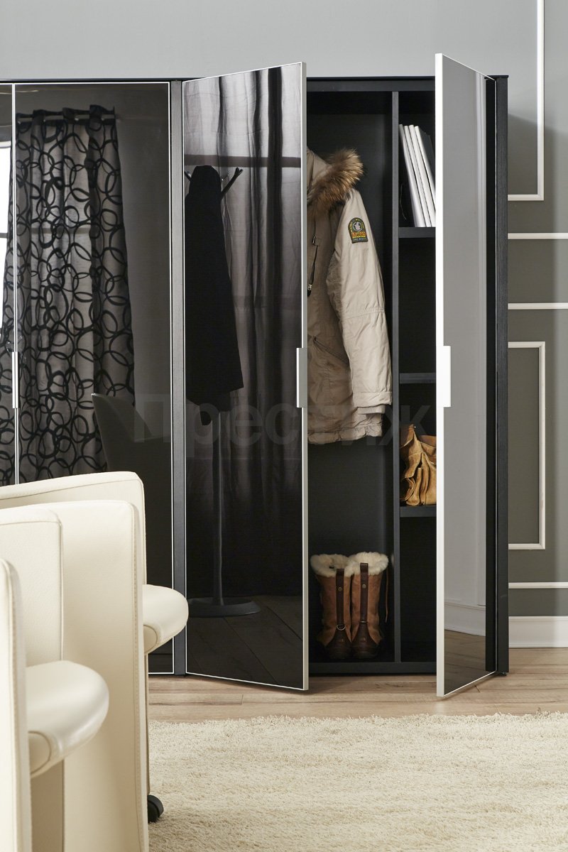 Шкафы: высотой 170 см — 4 двери; отделение для гардероба шириной 60 см; система плавного закрывания дверей