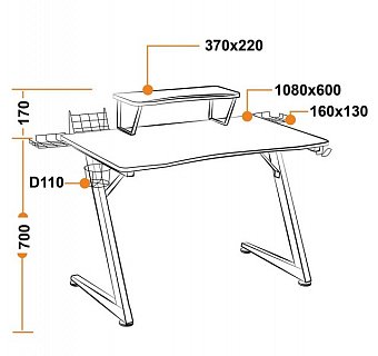 • Стол имеет сетчатые подставки из металл сетки для аксессуаров (наушники, колонки, тамблер).