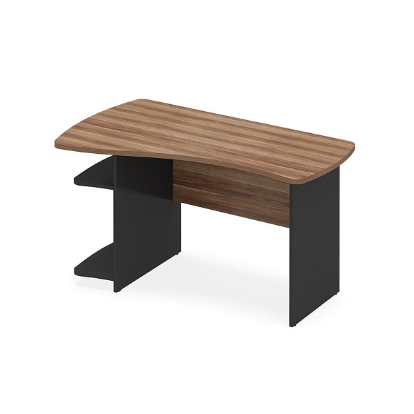 Стол рабочий на опорах из ДСП 135х80 с полками серия Статус. Столешница из ЛДСП толщиной 25мм, с обработкой кромкой ПВХ 2мм. Опоры стола из ЛДСП толщиной 18мм с покрытием "шагрень". Опоры стола черные, поверхность в цветах: слива, итальянский орех или клен.