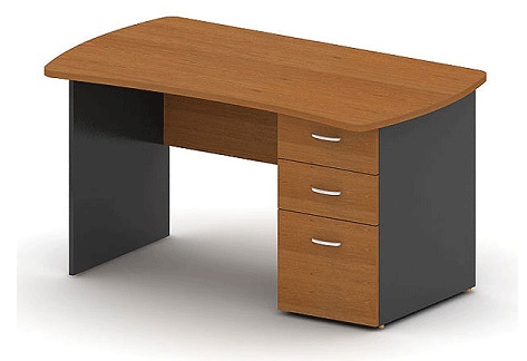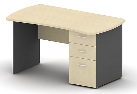 Стол универсальный со встроенной тумбой (правый, левый) из серии Статус. Опоры стола ДСП в цвете Антрацит. Тумба с тремя ящиками: верхние обычные, нижний файловый увеличенного размера. Нижний ящик комплектуется направляющими для файлов. Установлен центральный замок на все ящики. Размеры стола: 140х80х74,5см. Доступные цвета: слива, итальянский орех, клен.