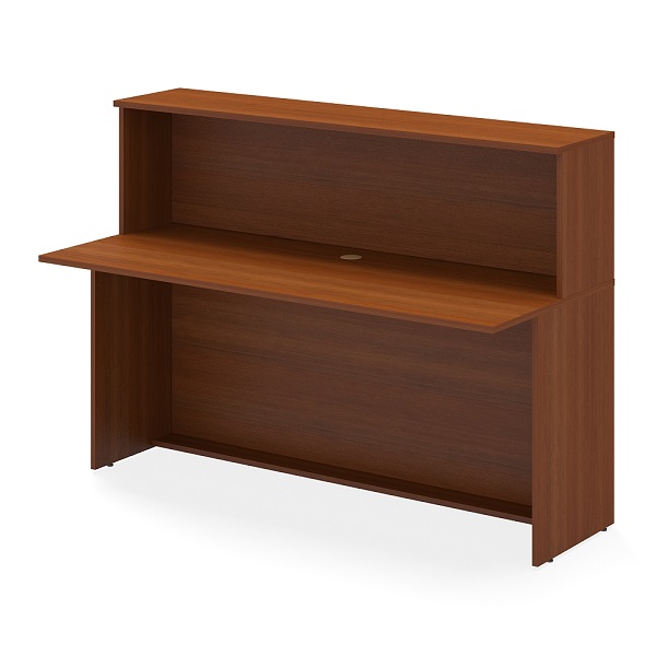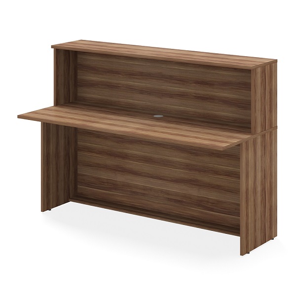 Прямой модуль унифицированной стойки-ресепшн. Модуль состоит из рабочего стола, закрытого высокой панелью, дополненной верхней полкой. Предусмотрено технологическое отверстие для установки компьютера и периферийных устройств. Может использоваться с любой серией мебели и любым фирменным стилем. Модуль может стоять как самостоятельно, так и в композиции. Дополнением к стойке служат боковые панели, которые приобретаются отдельно.
