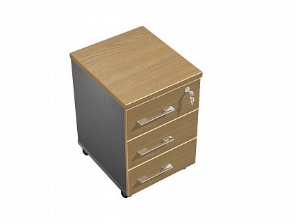Компактная выкатная тумба с тремя ящиками, один из которых закрывается на замок. Тумба выкатная с замком - оптимальный вариант для хранения как документов и канцелярских принадлежностей, так и личных вещей сотрудников. Такая тумба - отличный помощник в организации рабочего места и поддержании его опрятного внешнего вида: стол не будет загромождён лишними предметами.